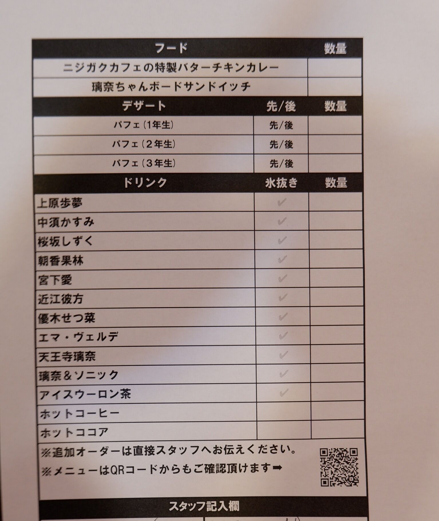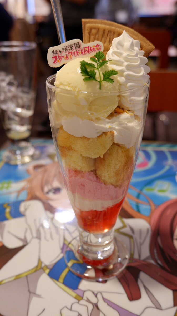 ニジガクカフェの特製バターチキンカレーとパフェとドリンクと一通り頂きました。パフェ(2年生)は通常は、いちごのアイスなんですが、丁度切らしていてバニラアイスになっていました。これはこれで🙂🙂🙂